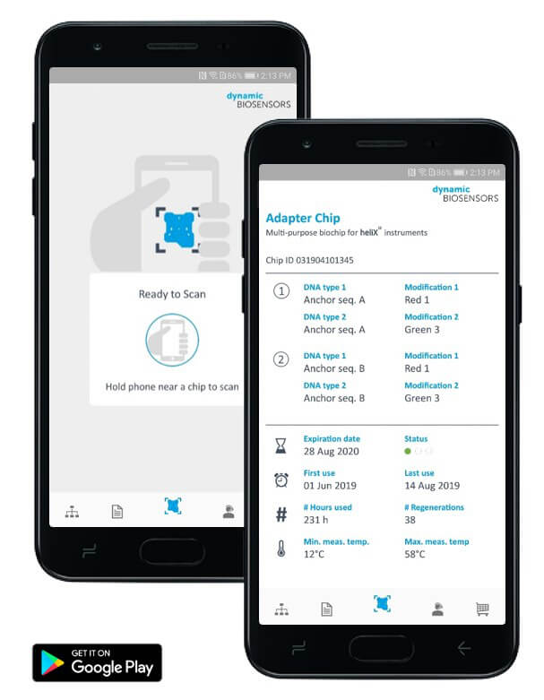 Innowacyjna konstrukcja chipów obejmuje zaawansowany układ przepływu próbki, odporny nawet na bardzo korozyjne odczynniki. Chip komunikuje się z instrumentem z wykorzystaniem systemu NFC, co pozwala śledzić jego status i zużycie. Specjalna aplikacja na smartfona pozwala zarządzać chipem, umożliwia śledzenie historii zużycia oraz gromadzi informacje nt. kompatybilnych materiałów zużywalnych.
