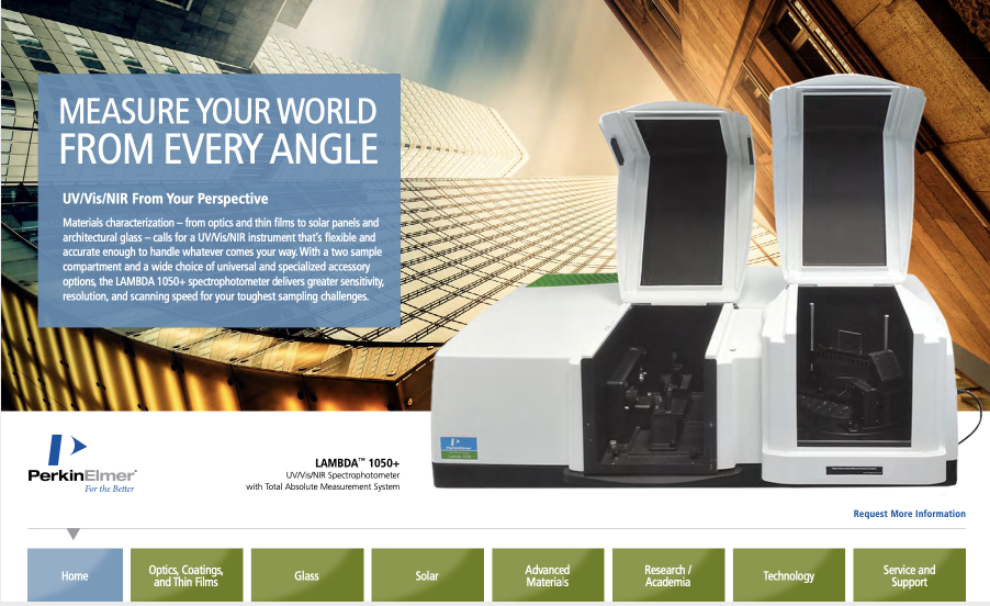 Spektrometr UV-VIS Lambda 850+ to wysokiej klasy urządzenie, stworzone z myślą o specjalistycznych badaniach. Cechuje się wytrzymałością, wysoką jakością pomiaru i możliwością zaprogramowania pracy. Umożliwia analizę próbek ciekłych i stałych, z wykorzystaniem różnorodnych uchwytów. Dodatkowo, aparat można wyposażyć w szereg akcesoriów umieszczanych w dwóch, niezależnych komorach badawczych, rozszerzających jego zdolności badawcze. Spektrometr może korzystać ze standardowego detektora transmisyjnego, jak również detektora zlokalizowanego w sferze całkującej. Dzięki temu spektrometr Lambda 850+ jest się popularnym wyborem profesjonalnych laboratoriów badawczo-rozwojowych.