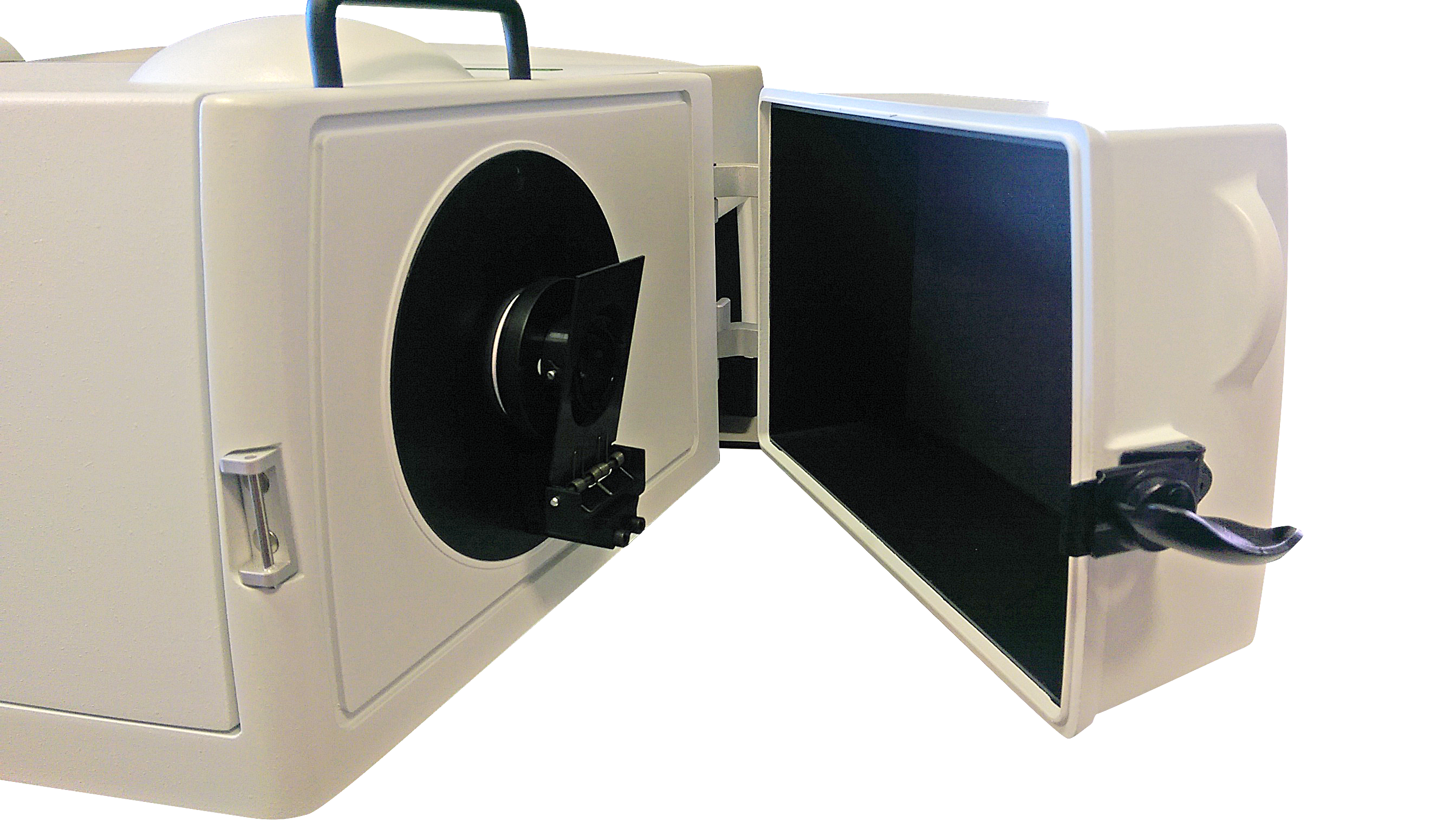 Dwie komory badawcze zapewniające swobodę w doborze warunków eksperymentu oraz elastyczność doboru akcesoriów, przystawek, detektorów.