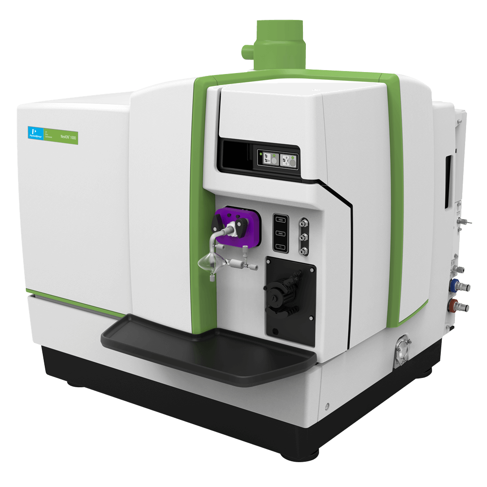 Spektrometr ICP-MS NexION 1000 jest przeznaczony do rutynowych, wielopierwiastkowych, analiz w laboratoriach ceniących prostotę i szybkość wykonywanych pomiarów. Chłodzona systemem Peltier komora mgielna umożliwia analizowanie próbek o wysokich stężeniach rozpuszczonych soli bez konieczności manualnego ich rozcieńczania (system AMS). Aparat posiada interfejs z trzema stożkami, które w połączeniu z kwadrupolowym ugięciem wiązki jonów (zmiana kierunku o 90o) zapewniają najskuteczniejsze usuwanie fotonów oraz cząsteczek neutralnych. Komora UCT może pracować w czterech trybach (standardowym, kolizyjnym, reakcyjnym i rozcieńczania elektronicznego) w czasie jednego pomiaru. System nie wymaga jakichkolwiek czynności konserwacyjnych. Kwadrupolowy analizator mas oraz detektor działający w dwóch trybach zapewniają największą szybkość skanowania >5000 amu/s umożliwiając łączenie z innymi technikami analitycznymi (HPLC, GC, ablacja laserowa) a także pomiary nanocząstek (SP-ICP-MS) i pojedynczych komórek S.C.-ICP-MS).