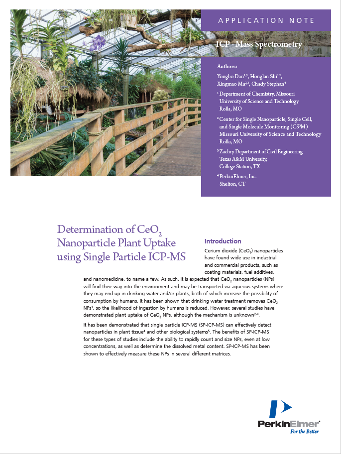 Nanoczastki są coraz częściej stosowane w różnorodnych gałęziach przemysłu. Wykorzystanie SP-ICP-MS pomaga w badaniu obecności nanocząstek w wodzie, glebach, roślinach, organizmach żywych i przedmiotach codziennego użytku. Dostracza cennych informacji z zakresu oceny toksyczności, biodostępności i mechanizmów bioakumulacji nanocząstek metali.