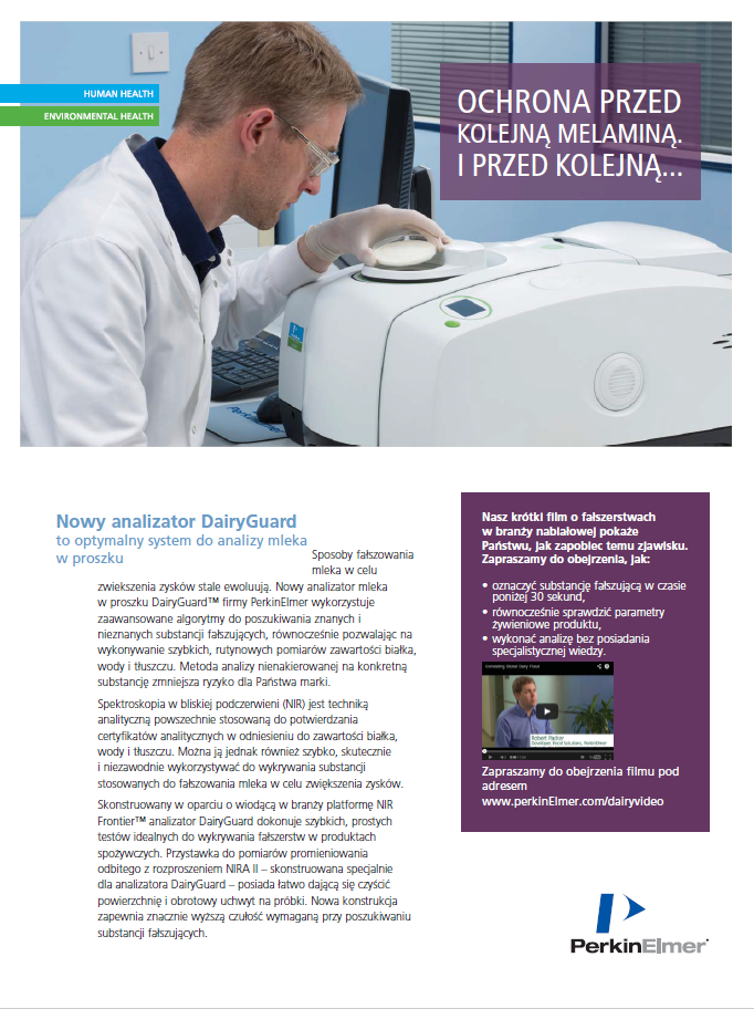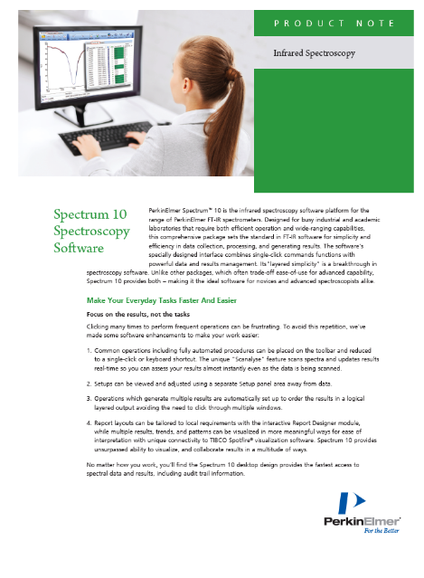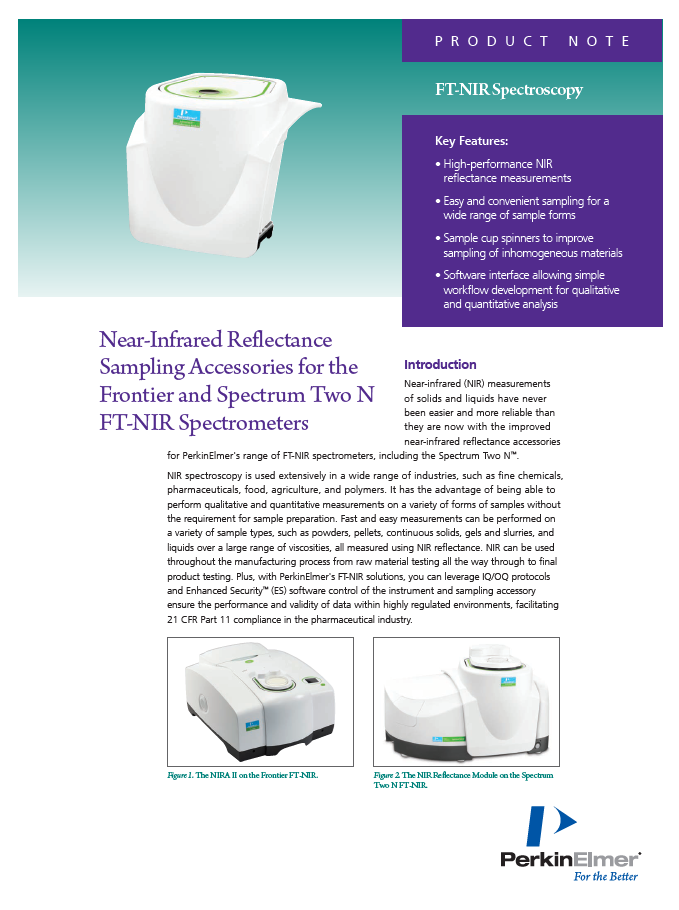 Spektrometr NIR Spectrum 3 łączy przełomowe innowacje, najnowszą myśl technologiczną z ponad 75-letnim doświadczeniem PerkinElmer w spektroskopii molekularnej. Począwszy od potwierdzania certyfikatów analitycznych w odniesieniu do zawartości białka, wody i tłuszczu aż do wykrywania fałszerstw w produktach żywnościowych Spectrum 3 NIR zapewnia pewną i bezkompromisową odpowiedź na Twoje potrzeby. Podstawowy zakres NIR można rozbudować o zakres średniej i dalekiej podczerwieni w zależności od wymagań analitycznych. Spectrum 3 umożliwia korzystanie z nowoczesnego rozwiązania w chmurze NetPlusTM z możliwością udostępniania danych spektralnych i widm.