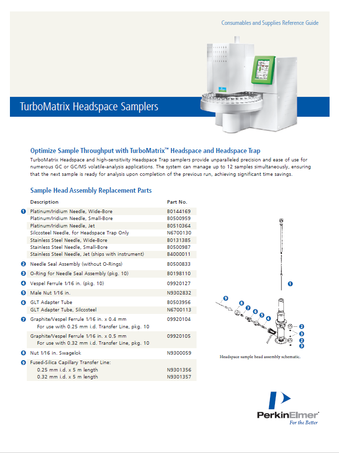 Przystawki TurboMatrix™ do analizy fazy nadpowierzchniowej to uznane, najlepsze na świecie urządzenia, które wykorzystują cały wachlarz sprawdzonych technologii, aby zapewnić wyśmienitą precyzję i czułość. Seria TurboMatrix™ oferuje cały szereg konfiguracji zarówno z headspace’m statycznym jak i dynamicznym. Systemy TurboMatrix™ HS-40 Trap i TurboMatrix™ HS-110 Trap z wbudowaną pułapką oferują możliwość 100-krotnego zwiększenia czułości. Próbki są wielokrotnie poddawane cyklowi ciśnieniowania w celu wydzielenia jak największej ilości par. Po zakończeniu wydzielania par pułapka z zaadsorbowanymi związkami jest osuszana i podgrzewana a anality precyzyjnie i wydajnie przenoszone są do chromatografu gazowego.