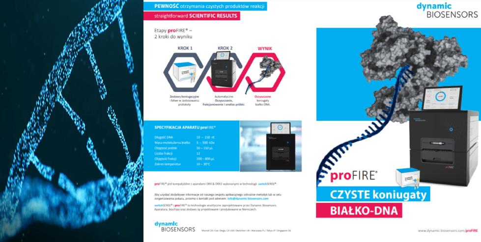 proFIRE® to wyjątkowy system do przygotowywania koniugatów białko-DNA, który umożliwia otrzymanie spójnych i poprawnych połączeń najwyższej jakości gotowych do dalszych eksperymentów. Tak uzyskane koniugaty wykorzystuje się m.in. do dalszych analiz z wykorzystaniem aparatów z serii heliX pracującymi w technologii switchSENSE®. System proFIRE® oparty jest o FPLC – szybką chromatografię białek, metodę wysokorozdzielczą i niezwykle powtarzalną, w której rozdział przeprowadzany jest przy niskim ciśnieniu. Następnie dedykowane systemowi oprogramowanie automatycznie rozpoznaje i ocenia otrzymane koniugaty.